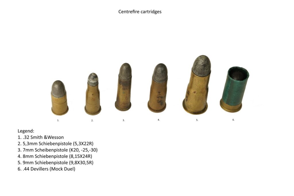 During the late 19th and early 20th century, the cartridge powered classic target pistol evolved from the pin-fired cartridges to the basically two cartridge options: either rimfire- or centrefire cartridges. Some authors argue that the use of the bigger and oversized calibers were preferred by some shooters as this had an added advantage: the larger the hole in the target – the more chance the shooter had in hitting the inner rings! Before the time of internet or television the shooters of that era were often reliant on their local gunsmiths for their ammo. As one can understand that the same gunsmith who earlier sold his pistol to a customer, wanted that same customer to return to him for more business. What better way than to make one’s own caliber?!